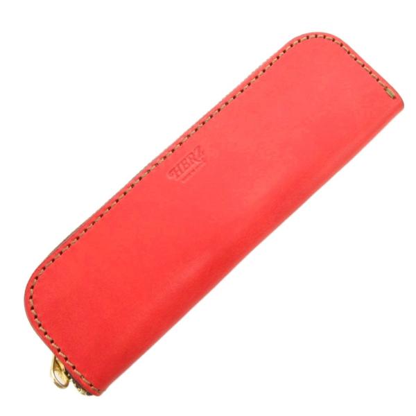 「一生使えること」を前提に、厚い革と太い糸でガシガシ作られたヘルツの定番ペンケースです。とにかく頑丈で、少々手荒に扱ってもびくともしない頼もしさがあります。三角のフォルムはデスクの上でも安定感があり、ペンが取り出しやすいのが嬉しいポイントです。